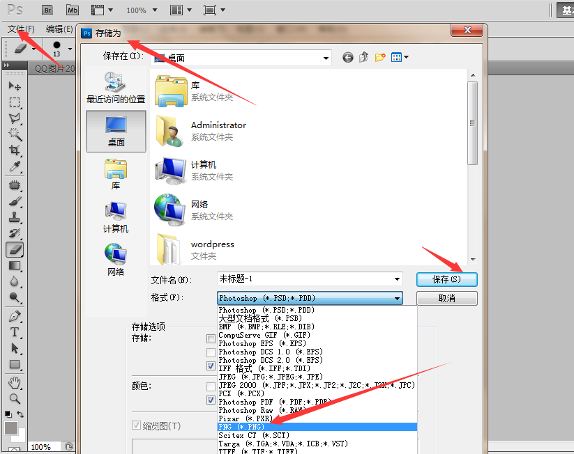 经过反复调试已经提取出了手势,接着就是保存手势,在“文件”中大开“存储为”,保存为png格式(因为png 格式才能存贮透明背景的图片,导入videoscribe中背景才是透明的。)