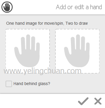 第三步:先后点击上图中左边红框内手形,在弹出窗口中选择你做的手形图片,出现下图