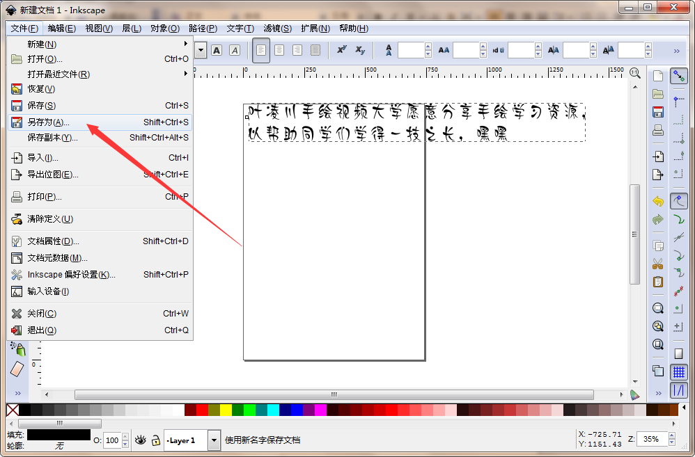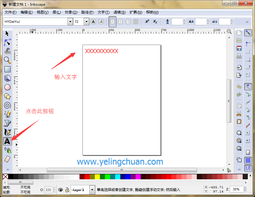 第一步:打开你的Inkscapel软件,点击文字按钮录入文字